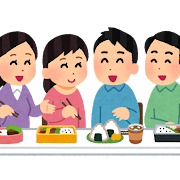 食事中の こども と ボランティア・グループ員【M】の会話をふたつ